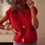 Be the first to review “Solid-Color Textured Knitted Waistcoat With Side Pockets And Buttons” Cancel reply