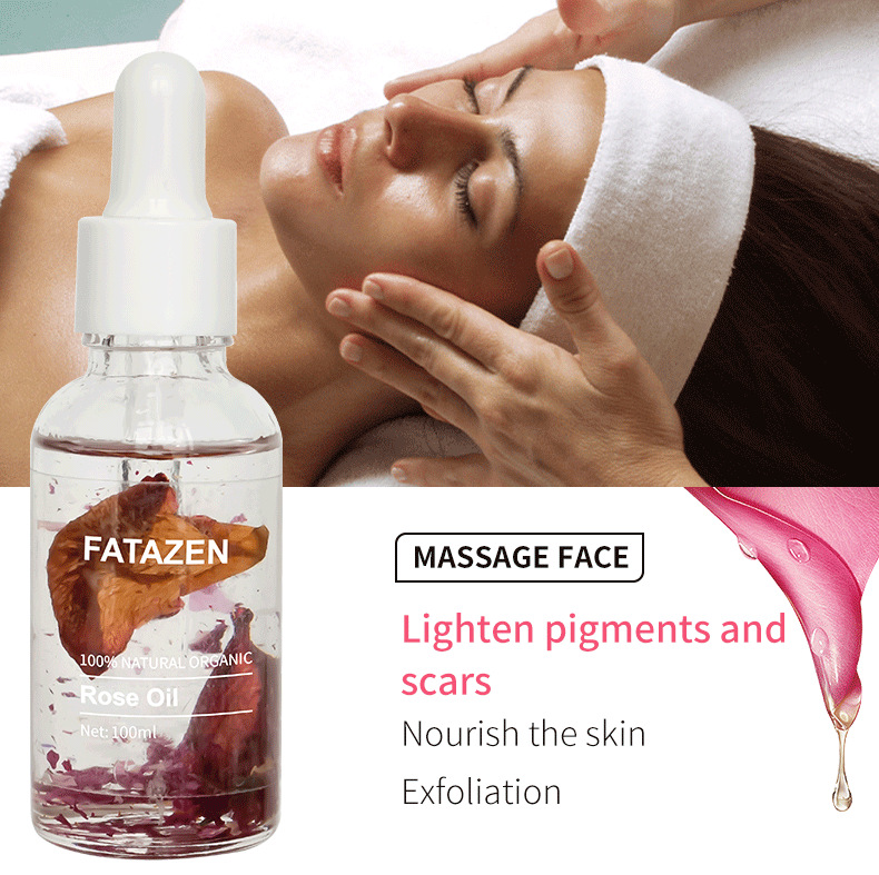 Premium rose essential oil for spa aromatherapy and soothing facial pain relief with gua sha massage benefits.