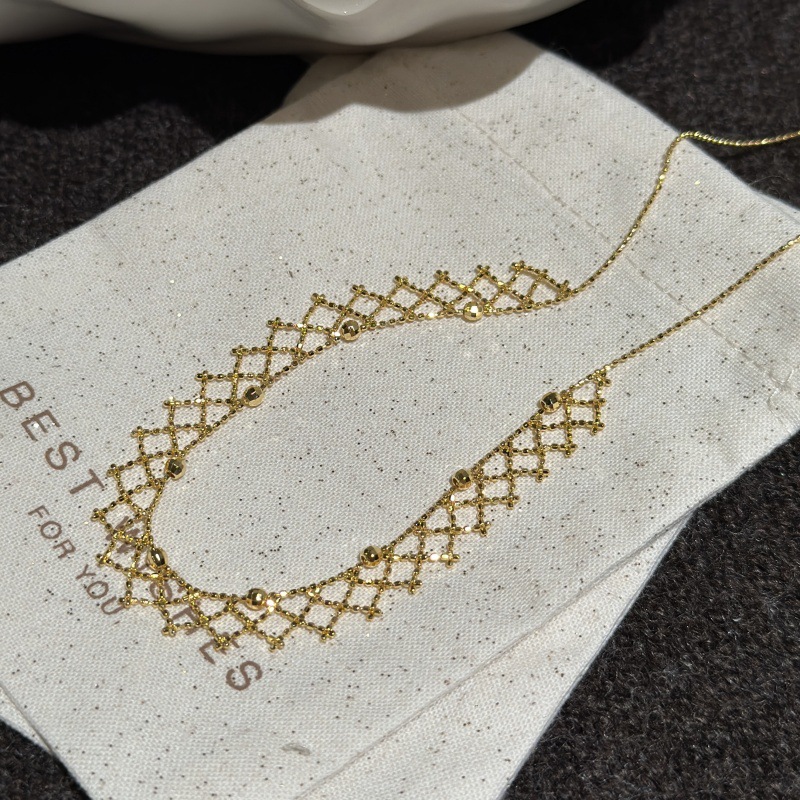 This exquisite necklace showcases a mid-ancient and royal court-inspired design, blending minimalism with intricate lace craftsmanship. Created for those with a special interest in historical aesthetics, it features delicate patterns that embody elegance and refined taste. The necklace serves as a distinctive accessory, suitable for enhancing both contemporary and classical ensembles with its subtle yet sophisticated appeal.