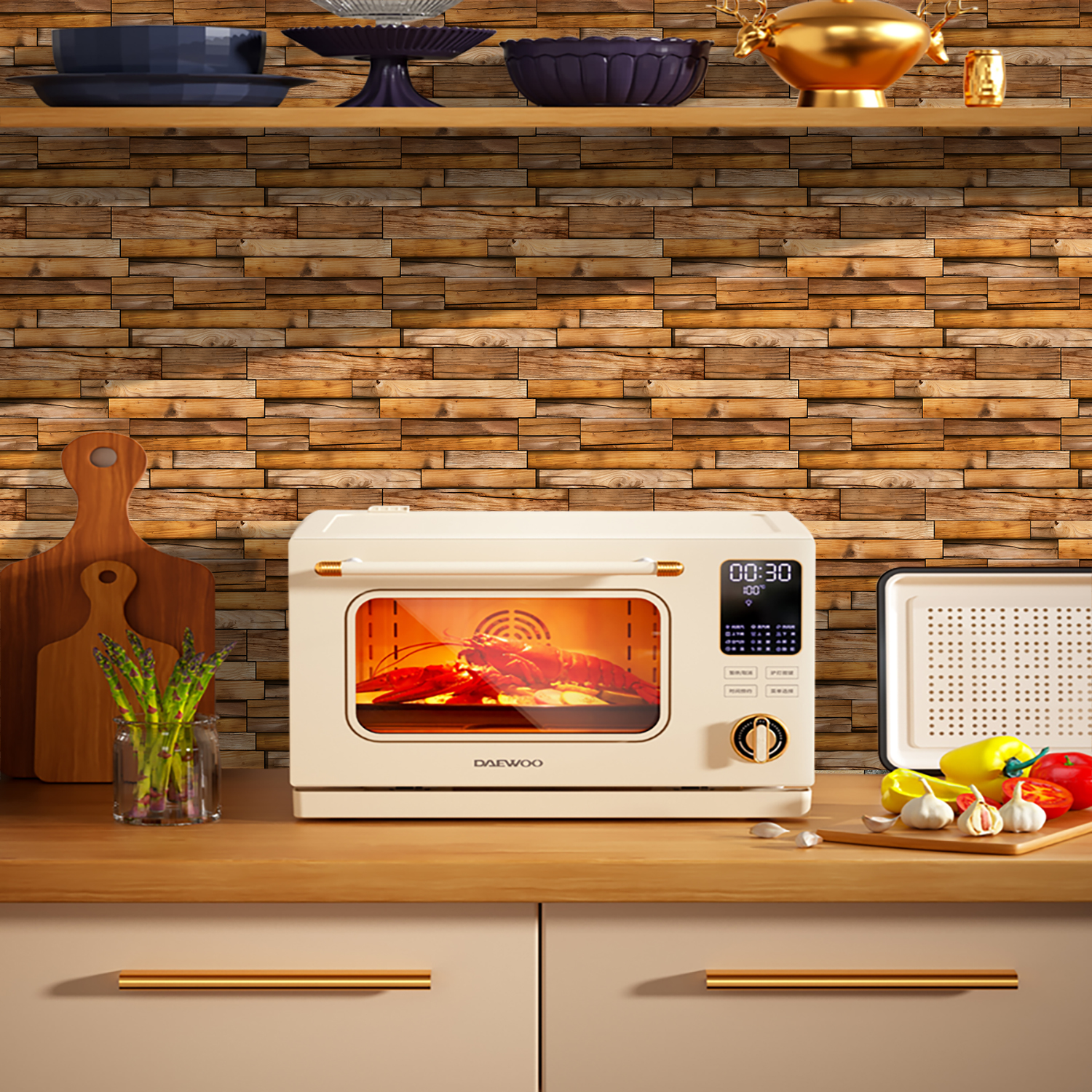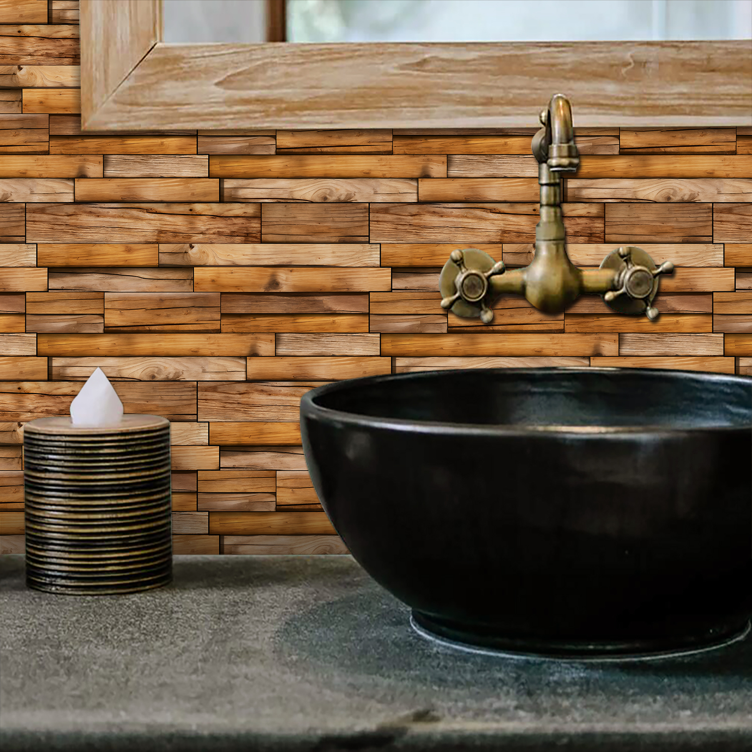 Durable PVC wood grain wall stickers, waterproof and self-adhesive, ideal for kitchen splashbacks, bathrooms, and dormitory décor.