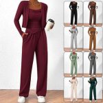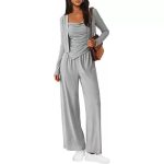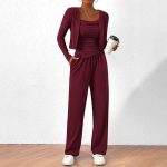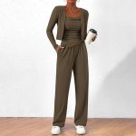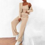 This three-piece ensemble includes a relaxed-fit coat paired with suspender trousers, perfectly blending casual comfort with a sporty aesthetic. Crafted from soft, breathable fabric, the set ensures ease of movement and all-day comfort. The coat features a laid-back design ideal for casual outings, while the adjustable suspenders on the trousers provide a secure and customizable fit. This coordinated set is versatile for leisurely wear, offering a stylish yet comfortable attire option.