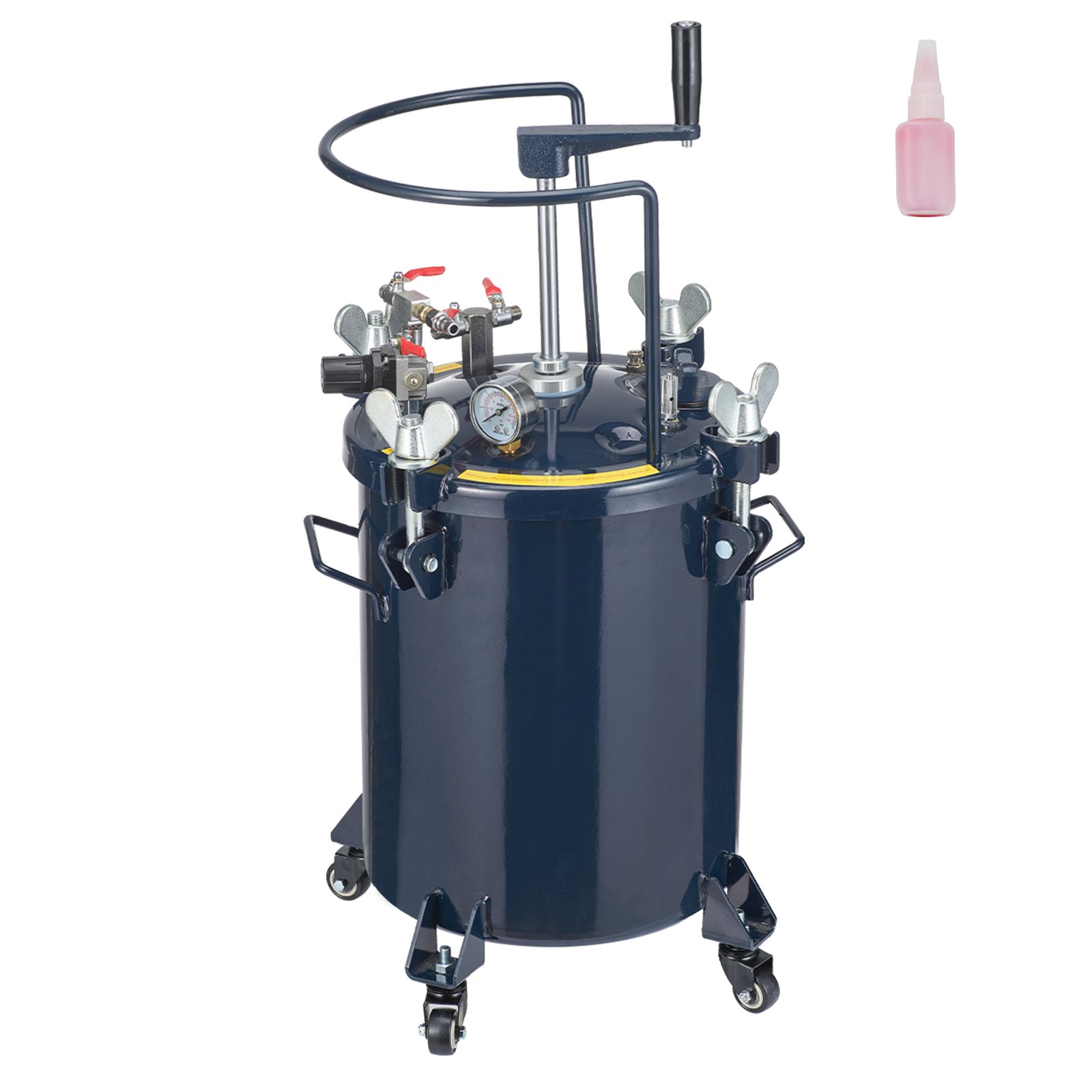 This 30-liter (8-gallon) spray paint pressure pot tank is designed for efficient and precise paint application. Equipped with a manual mixing agitator, it ensures consistent paint blending during use. The pressure pot supports a maximum pressure of 70 PSI, making it suitable for various applications including industry, home decor, architecture, construction, and automotive painting. Its robust construction allows it to handle leak repair sealants and other viscous materials effectively, providing reliability and durability in demanding environments.