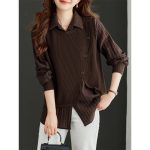 This loose-fit shirt is designed for optimal comfort during spring and autumn seasons. Featuring a belly-covering length, it offers a relaxed silhouette that ensures ease of movement. The shirt is enhanced with subtle stitching details that add a refined touch to its casual style. Crafted from breathable fabric, it provides softness and durability suitable for regular use. Its versatile design makes it appropriate for various casual occasions while prioritizing wearer comfort.