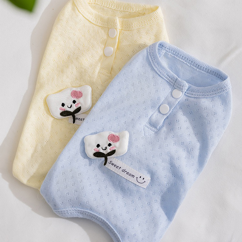 Lightweight and stylish fabric label pet clothes designed for small and medium dogs, perfect as air-conditioned suits for spring and summer.