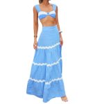 Chic women’s bustier and waist-cinching skirt set for spring and summer, offering a trendy and flattering silhouette.