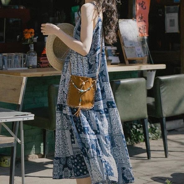 This strapless dress for women is crafted from a blend of cotton and linen, providing a breathable and comfortable wear ideal for spring and summer. Designed without straps, it offers a stylish and elegant silhouette suitable for warm weather. The natural fabrics ensure good air circulation, making it perfect for daily wear or casual outings during warmer months.