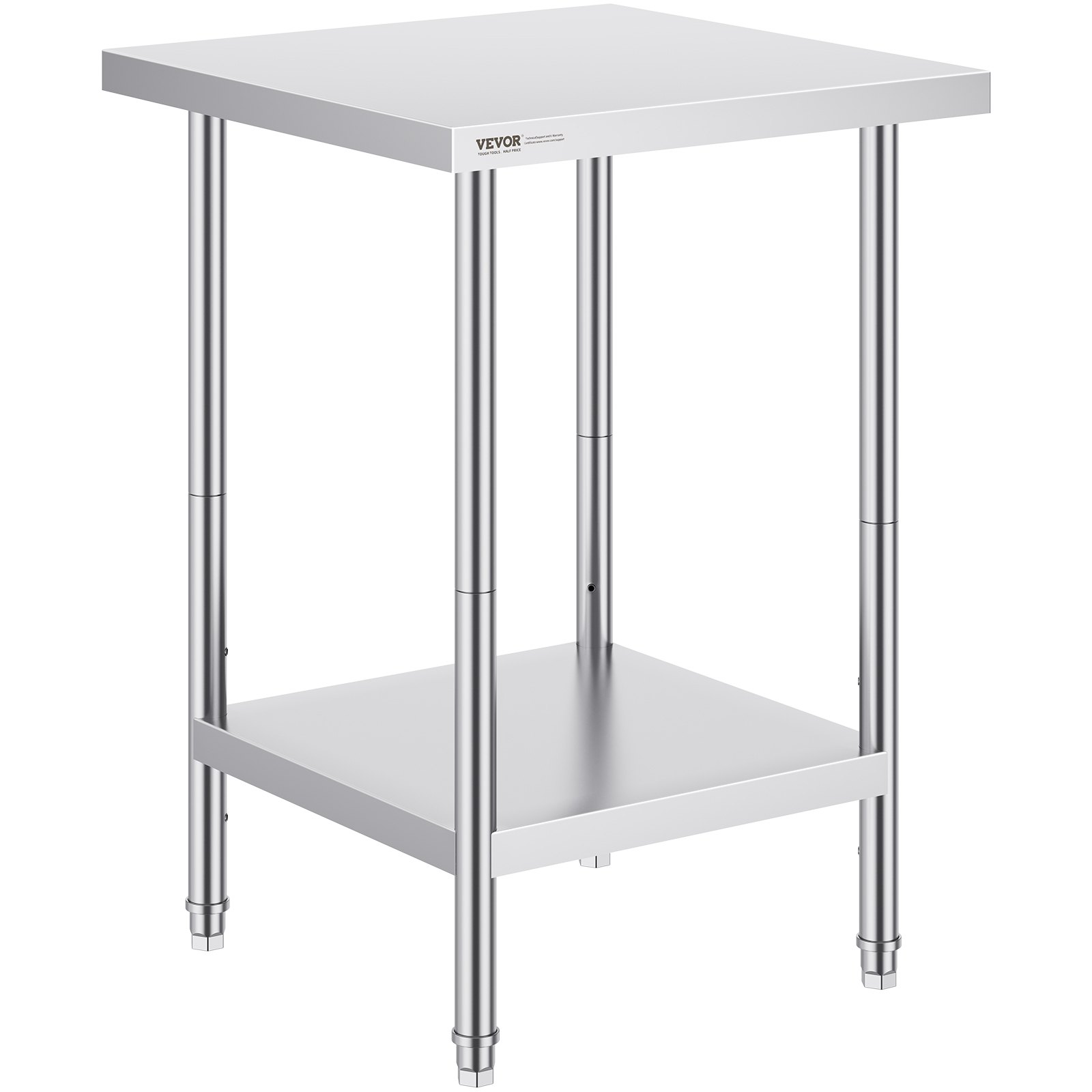 This heavy duty stainless steel prep table measures 24 x 24 x 34 inches and features a robust metal construction designed for commercial and heavy use environments. Equipped with three adjustable height settings, it offers versatility to accommodate various tasks and ergonomic preferences. The workstation provides a sturdy surface perfect for kitchen prep, garage projects, restaurant operations, or backyard activities. Its corrosion-resistant stainless steel material ensures long-lasting durability and easy cleaning, making it suitable for both indoor and outdoor applications. This prep table combines practicality with strength, supporting efficient workflow in demanding settings.
