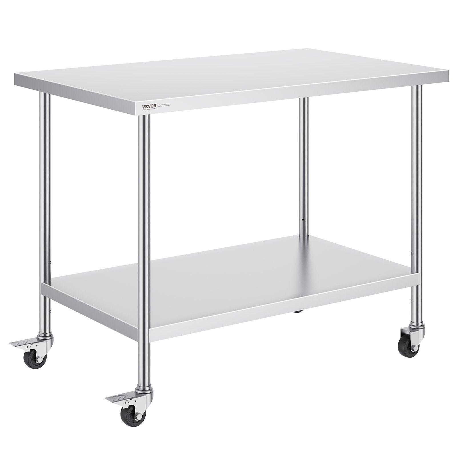 Constructed from premium stainless steel, this work table measures 30 x 48 x 38 inches and is designed for rigorous tasks in commercial kitchens and restaurants. It features four sturdy wheels that allow easy mobility and three adjustable height settings to accommodate various work requirements. The robust build ensures reliable support for heavy food preparation activities, making it ideal for professional culinary environments. Its silver finish provides a sleek, hygienic surface resistant to corrosion and easy to clean, promoting efficient kitchen operations.