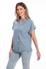 Be the first to review “Stand Collar Button Fashion Comfortable Short Sleeve Women’s Summer Top” Cancel reply