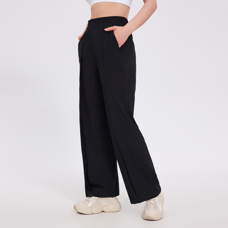 Comfortable women’s wide-leg sports pants designed for fitness and casual wear, featuring a loose straight fit optimal for active lifestyles.