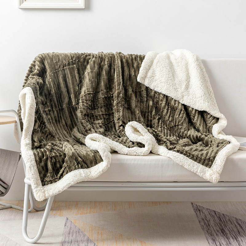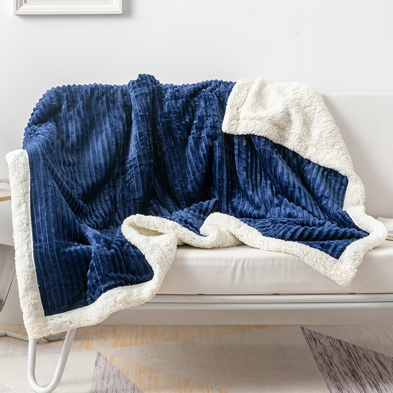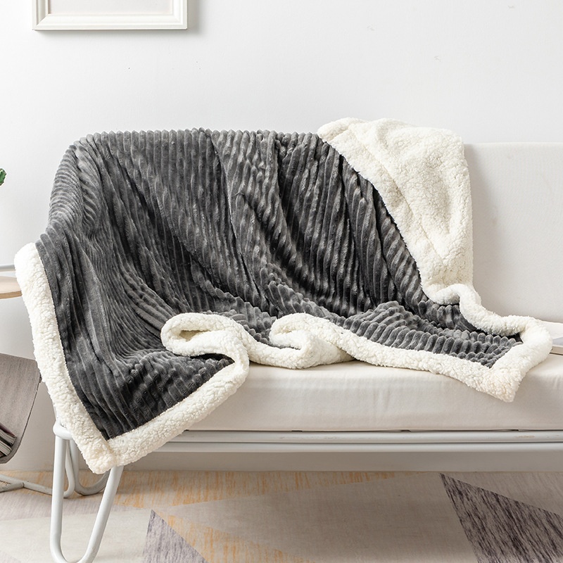 Luxurious striped lambswool blanket with double-layer thickened fabric for superior warmth and comfort.