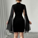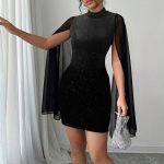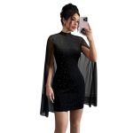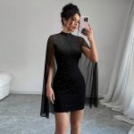 Be the first to review “Stylish High-neck Dress Black Featuring Sparkling Rhinestones And Sequins Figure-hugging Fit Short Sleeves Mesh Patchwork” Cancel reply