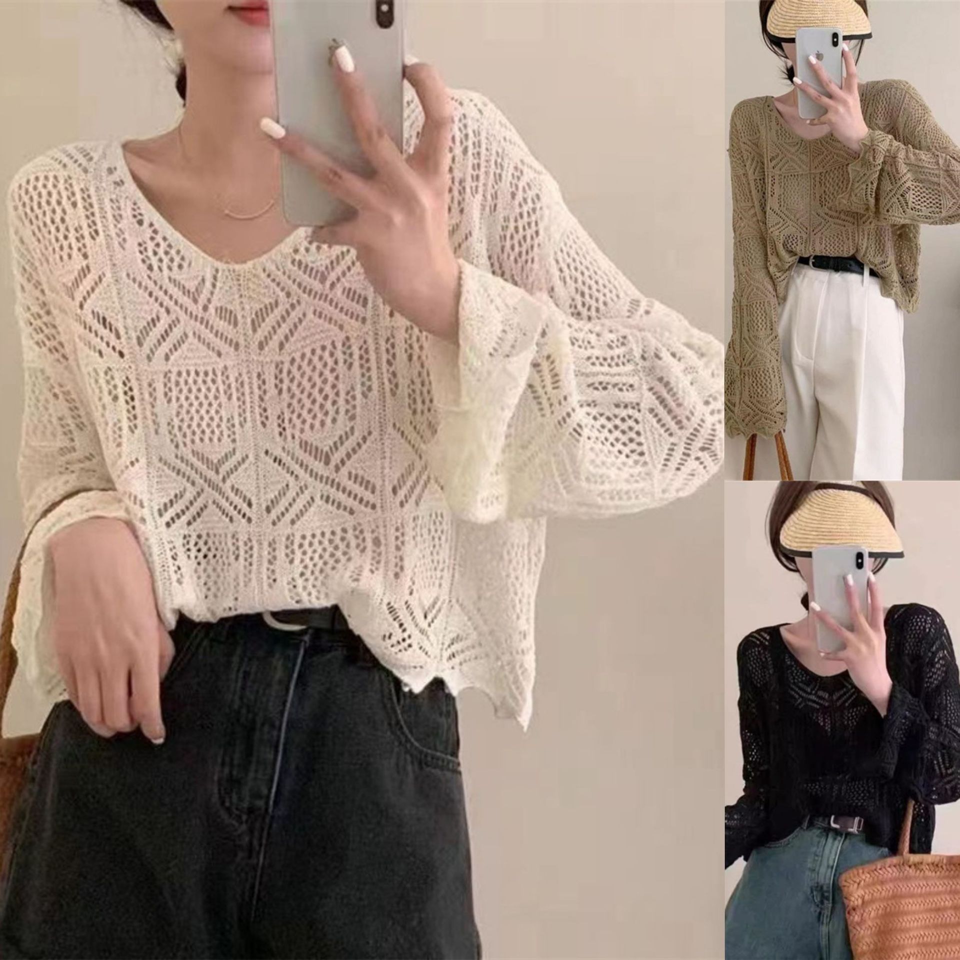Be the first to review “Summer New V-neck Hollowed Fashion Loose Sun-protection Shirt” Cancel reply