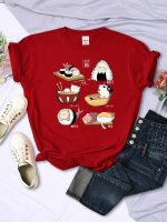 Comfortable female T-shirt featuring unique Harajuku sushi cats print, perfect for casual wear and vibrant street fashion.
