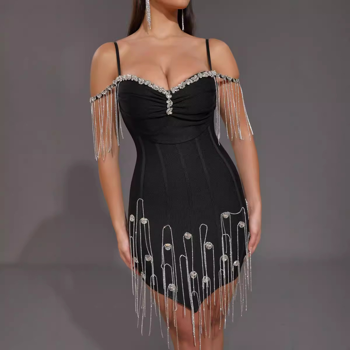 Elegant suspender bandage tight hip skirt for banquets and parties, designed to enhance silhouette and provide a stylish look.