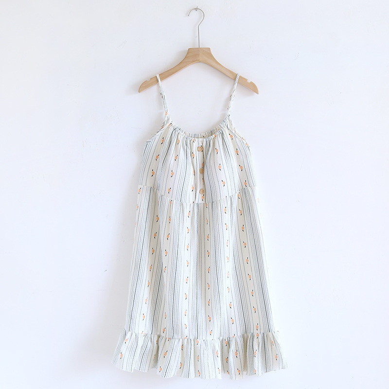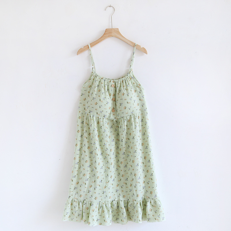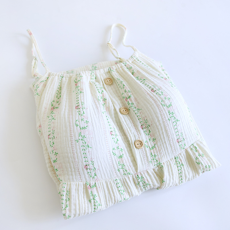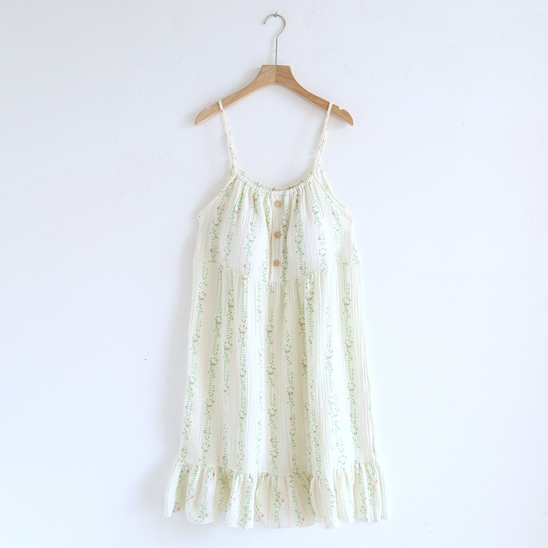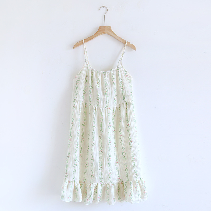 Comfortable cotton suspender skirt pajamas featuring a sweet floral design, perfect for cozy nights and relaxed indoor wear.