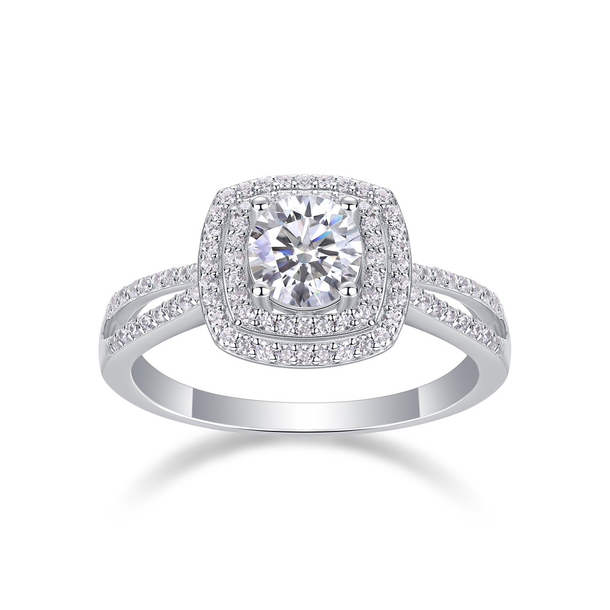 Elegant Sweet Holiday wedding ring set featuring 1-carat premium moissanite, crafted in S925 silver, platinum-plated with diamond accents, diamond-pen testable.