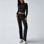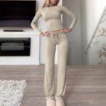 Elegant women’s clothing set featuring a solid color T-shirt paired with matching trousers for a stylish and comfortable outfit.