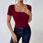 Be the first to review “T-shirt With A Mature And Elegant Style Wine-red Short-sleeved Top” Cancel reply