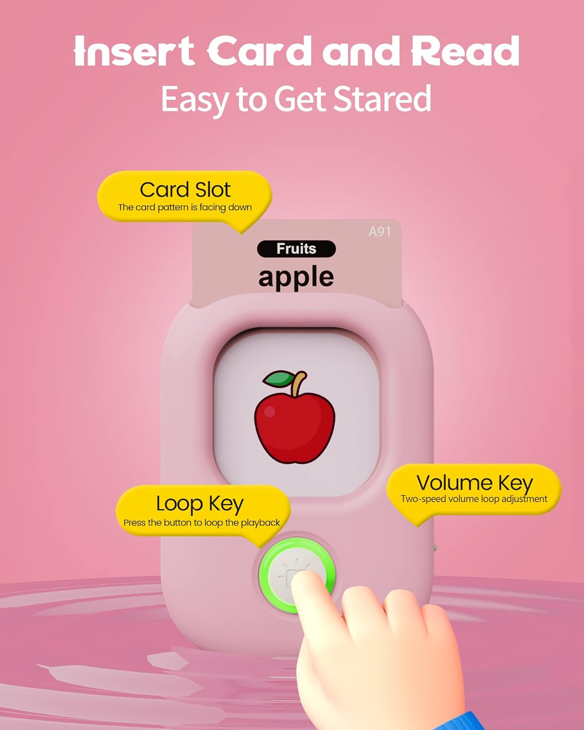 INTERACTIVE TOYS FOR TODDLERS: This talking flash cards for toddlers is equipped with 1 card reader, 448 sight words with different themes, bigger light-up buttons, realistic analog sounds, cute pictures and automatic pronunciation function, increase your interaction with your child through this toy, let your child improve language skills while having fun