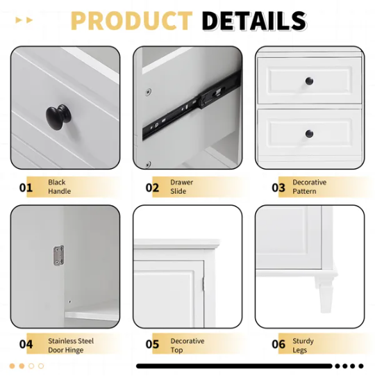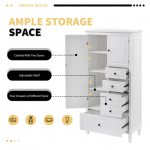 Be the first to review “Tall And Wide Storage Cabinet With Doors For Bathroom Office Living Room Indoor, Four Drawers Of Different Sizes, Adjustable Shelves, White” Cancel reply