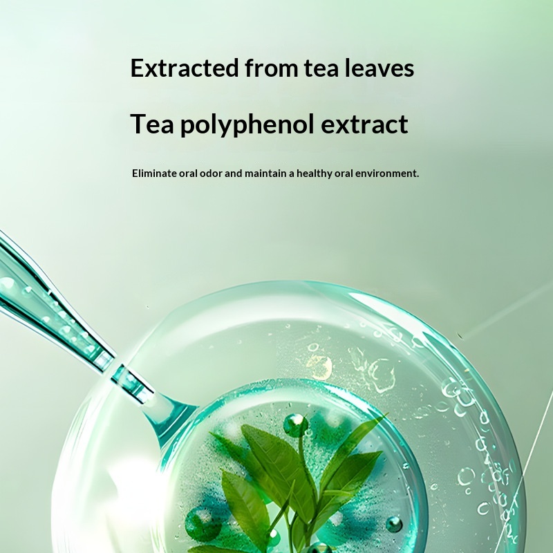 Natural tea polyphenol soft granules that help freshen breath for dogs and cats, promoting oral hygiene and pet health.