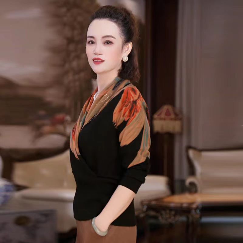 Elegant women’s thin V-neck sweater featuring a floral design, perfect for layering and adding a touch of sophistication to any outfit.