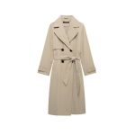 Elegant temperament midi skirt trench coat with belt, combining classic design and modern style for versatile outerwear.
