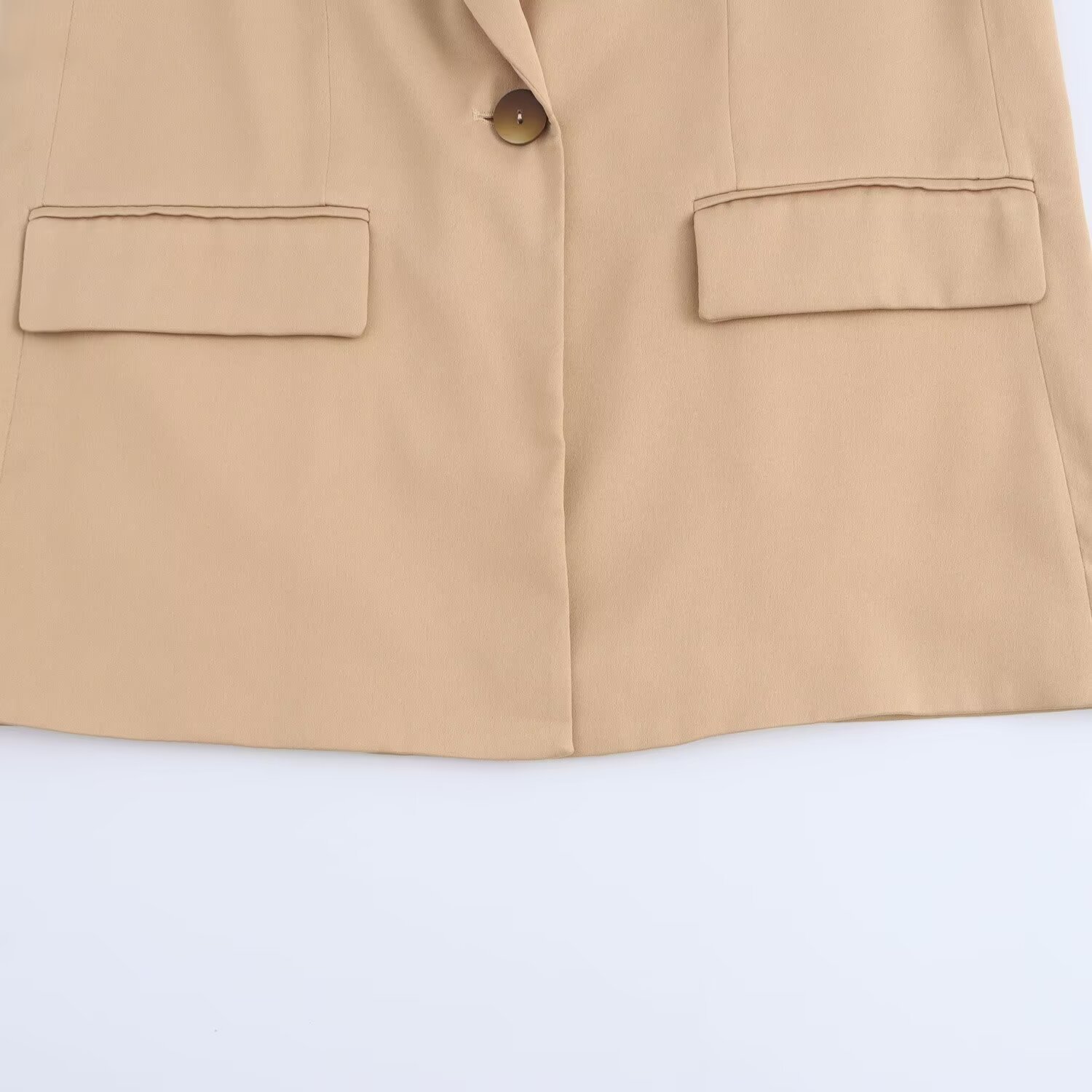 Elegant casual long-sleeve blazer crafted from smooth silk-like satin fabric for a refined look and comfortable fit.