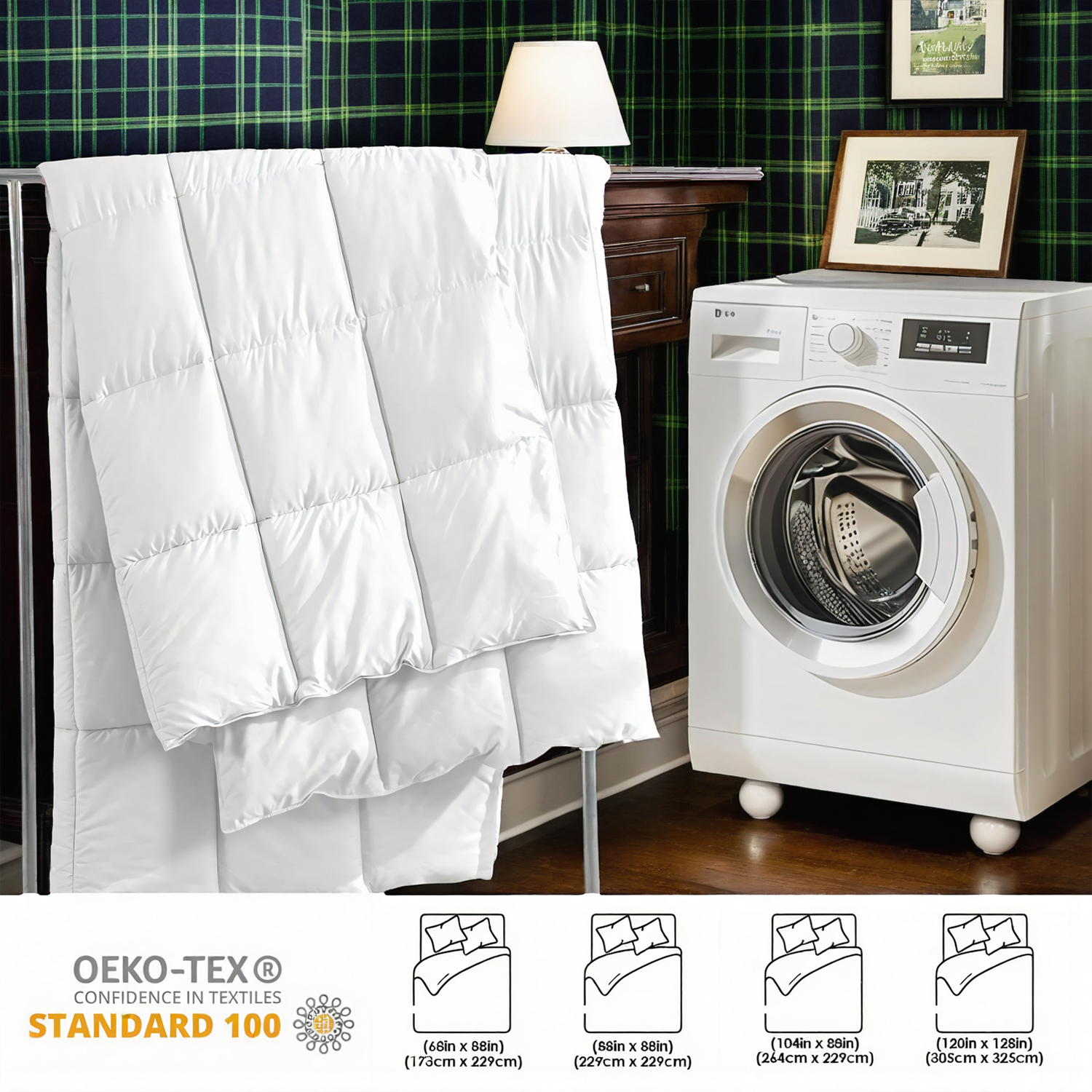The Cozy Cloud Oversized Comforter combines a fashionable plaid pattern with a luxuriously soft, extra-plush fill. This heavyweight duvet provides exceptional warmth and comfort throughout all seasons, making it an ideal bedding choice for dorm rooms or bedrooms. Its generous size ensures full coverage, while the high-quality materials contribute to durability and cozy softness for a restful night’s sleep.