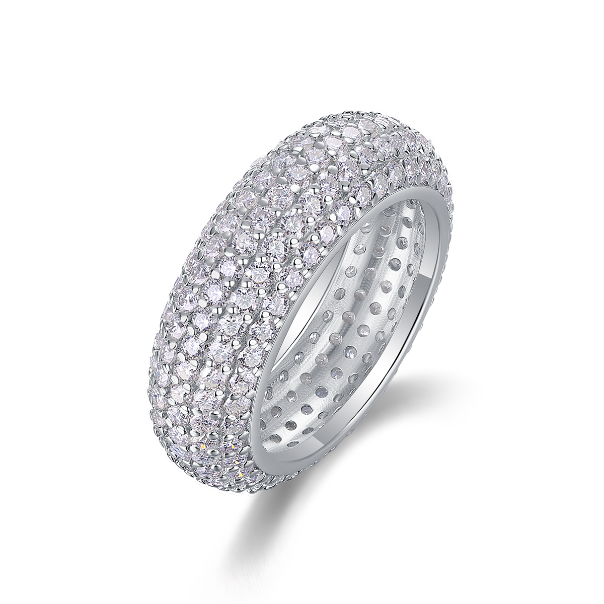 Elegant moissanite wedding ring crafted in S925 silver with platinum plating, diamond-tested for authenticity and lasting brilliance.