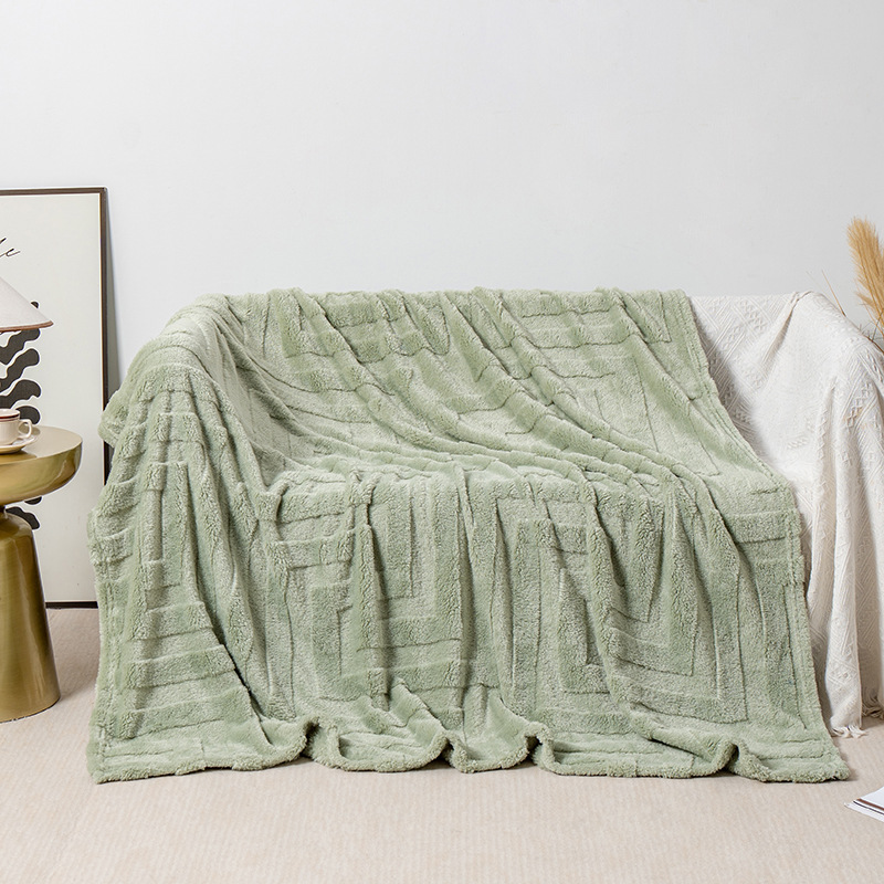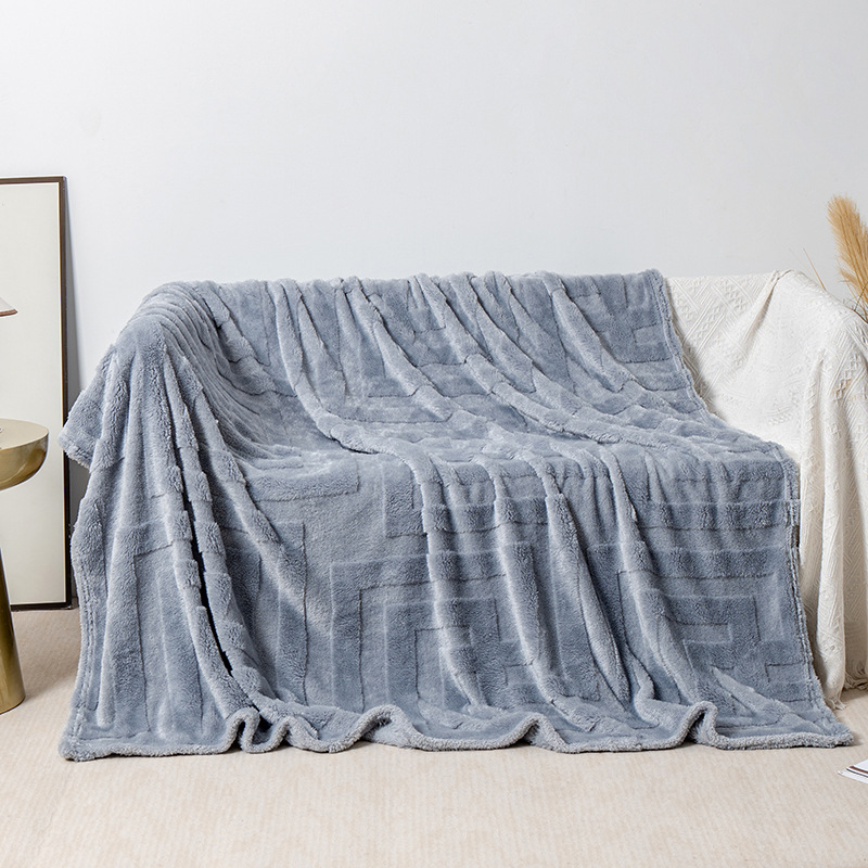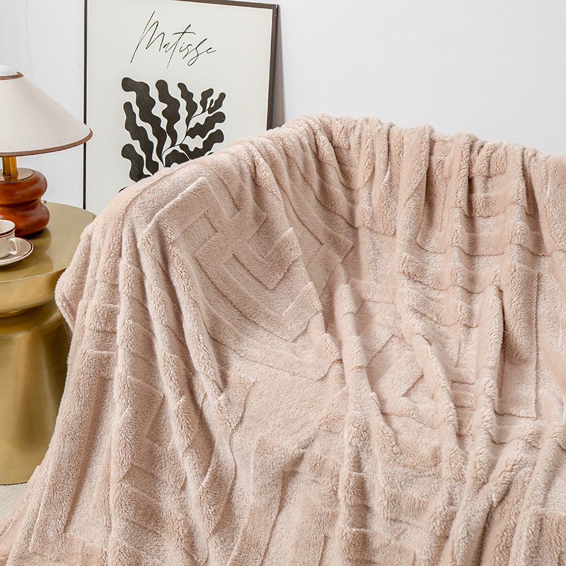 Soft and thick coral fleece flannel blanket, perfect for sofa use, providing warmth and comfort with a cozy square design.