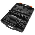 This heavy-duty torque multiplier wrench set features a robust 1 inch drive designed specifically for removing lug nuts on trucks, trailers, and RVs. With a high torque ratio of 1:64, it provides up to 6800N·m of torque, ensuring efficient and effortless loosening of stubborn lug nuts. The set includes eight durable sockets of various sizes to fit multiple lug nut dimensions, accompanied by a convenient storage case for organized and portable use. Constructed with high-quality materials, this multiplier offers reliable performance and enhanced leverage for demanding vehicle maintenance tasks.