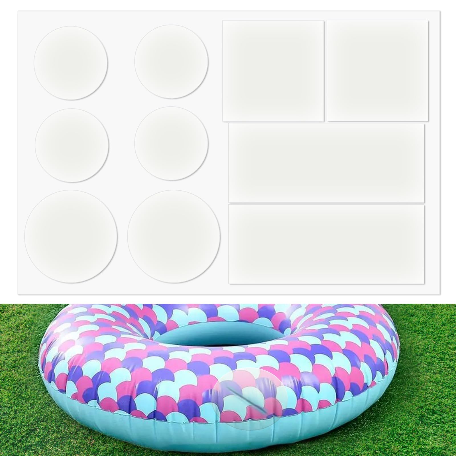 Durable 10-piece TPU patch kit for repairing air mattresses, pools, tents, bounce houses, and other inflatables with mixed sizes.