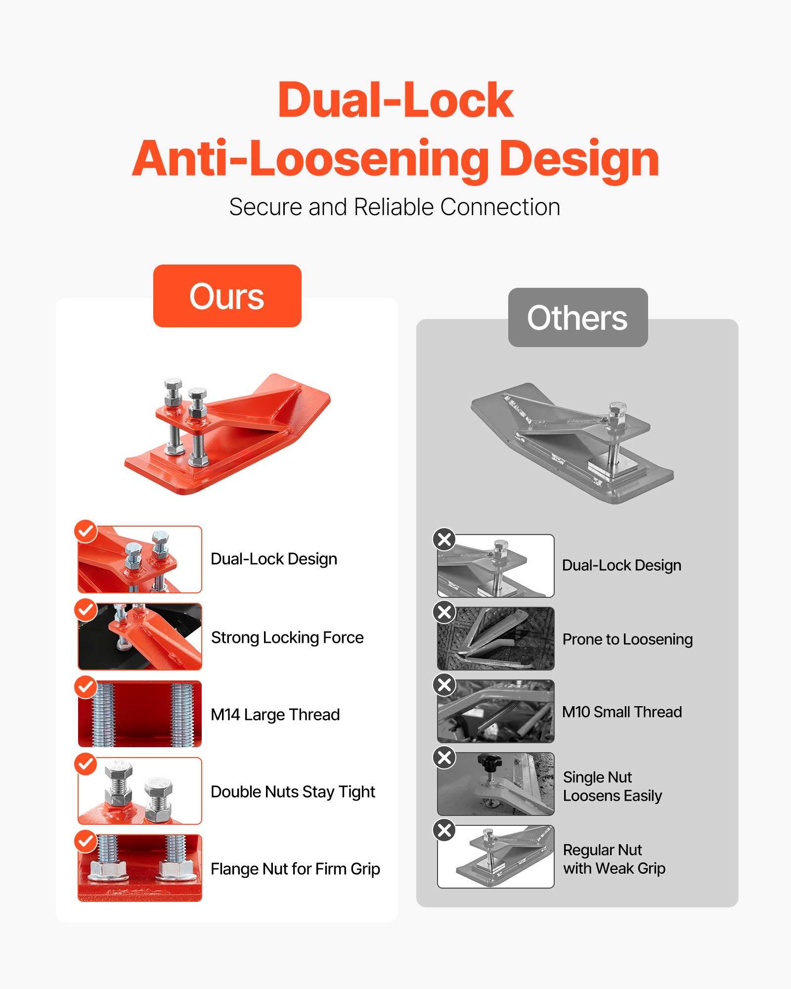 Double-Lock Design: Unlike single-lock protectors, our bucket edge tamer features a double-lock design for stronger fastening. Bolts have nuts top and bottom, plus larger M14 threads, ensuring a stable connection for reliable use.