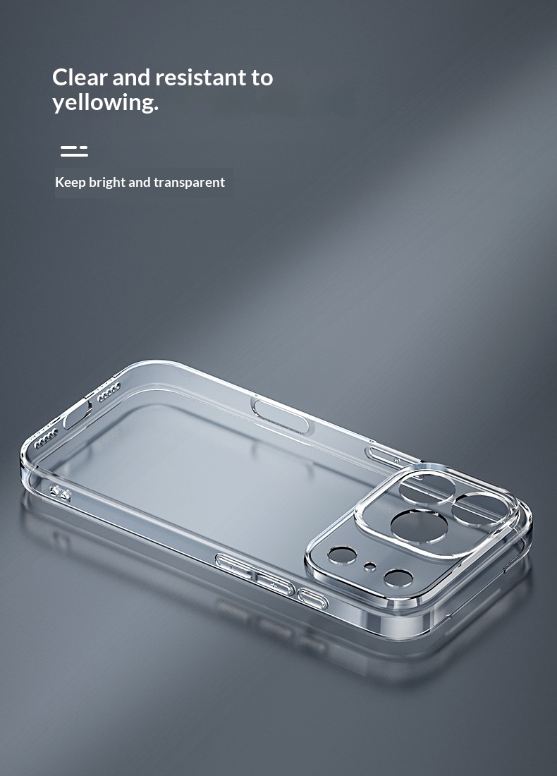 Durable transparent phone case resists yellowing, providing long-lasting protection with a slim, clear design.