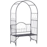 This trellis arbor arch features a robust design ideal for supporting climbing plants, perfect for garden pathways or entrances. Constructed with durable materials, it includes a comfortable garden bench integrated into the structure, combining functionality with aesthetic appeal. The arch promotes healthy plant growth while providing a relaxing seating area, enhancing the ambiance of any outdoor setting. Its weather-resistant finish ensures longevity and easy maintenance, making it a practical addition to various garden styles.