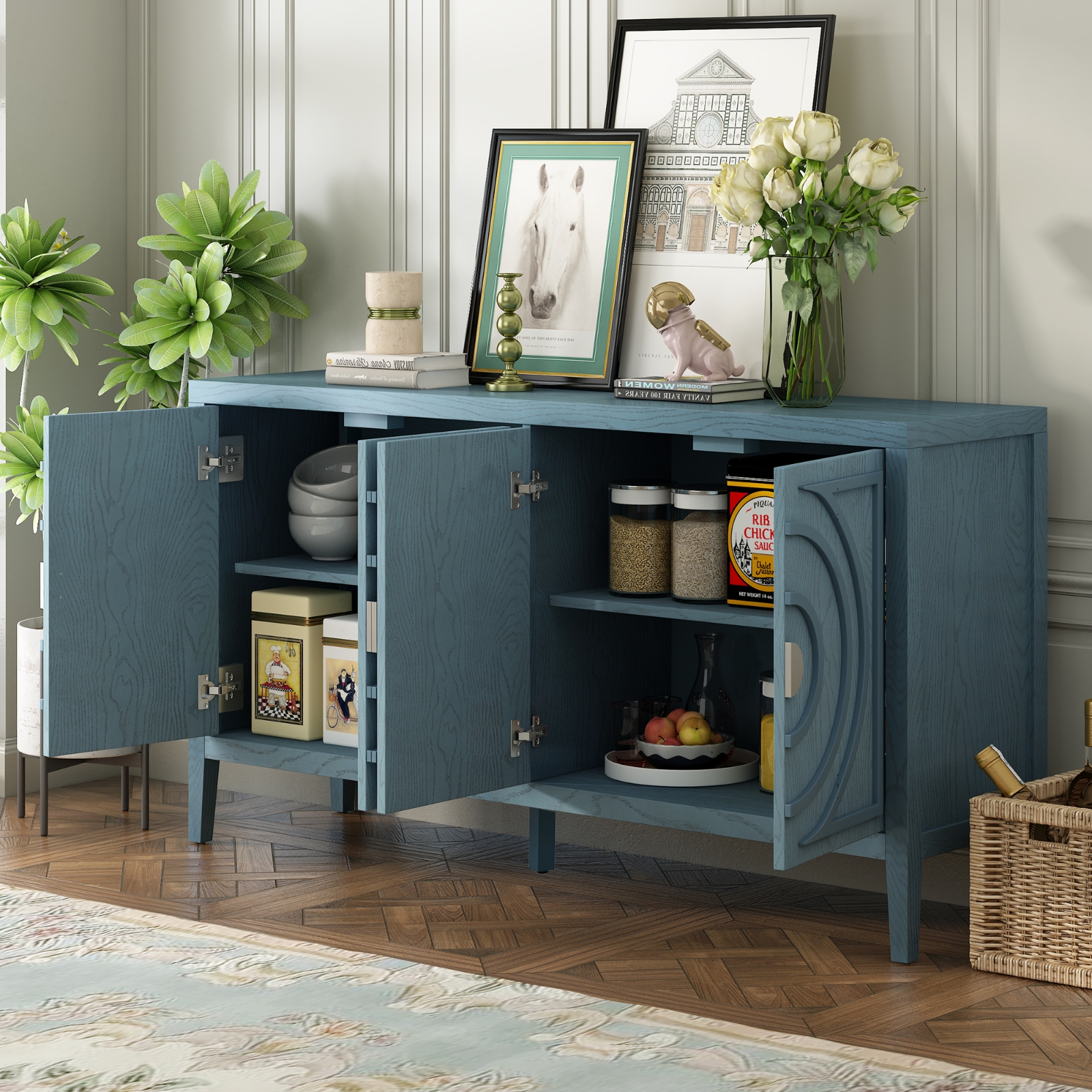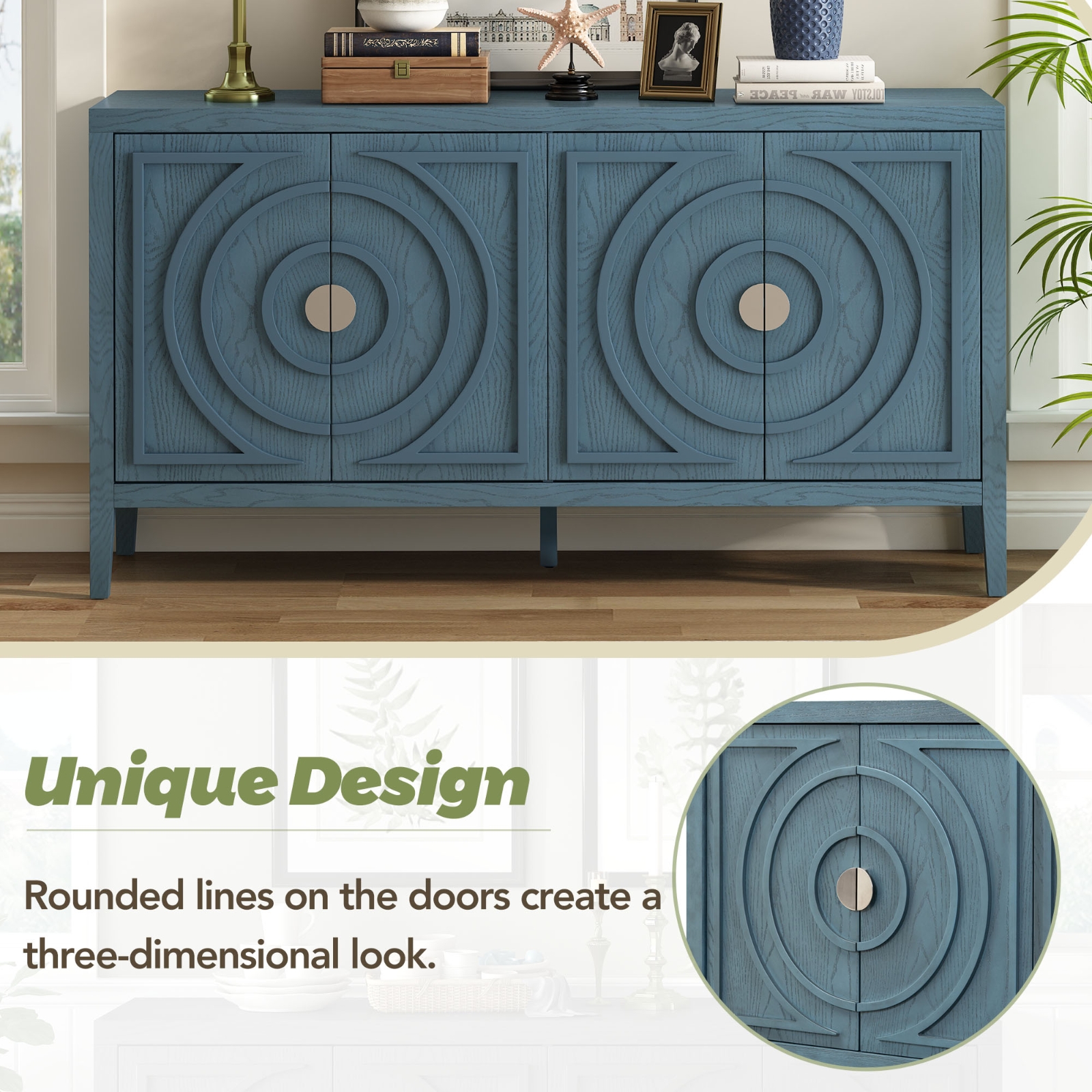 Stylish TREXM retro sideboard featuring circular groove design and round metal handles, perfect for enhancing dining room storage.