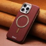 Durable leather phone case with magnetic suction for all-around protection and business style, featuring a drop-resistant triangle shield design.