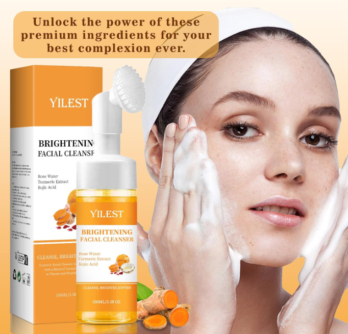 Turmeric Facial Cleanser – A gentle foaming face wash enriched with Rose Water, Turmeric Extract, and Kojic Acid to cleanse, brighten, and soften the skin.