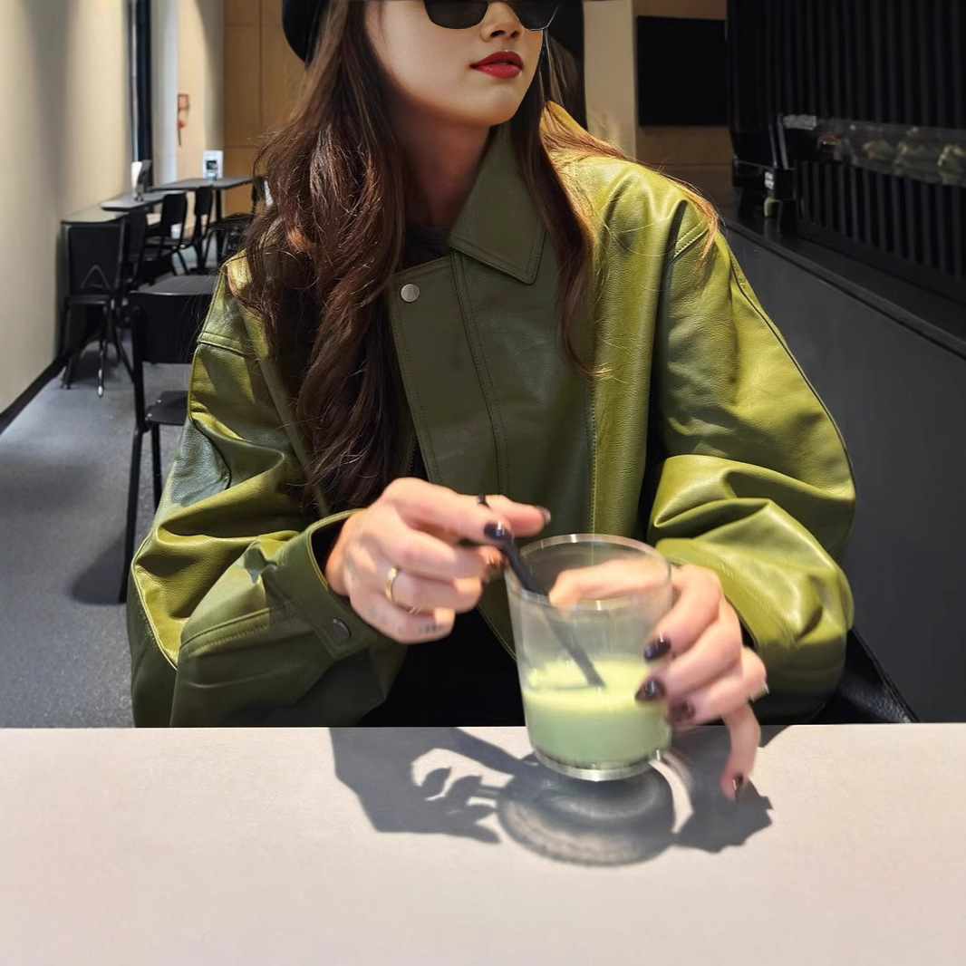 Be the first to review “Turn-down Collar Green Leather Jacket Short Coat For Women” Cancel reply