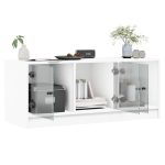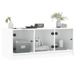 Elegant TV cabinet with glass doors measuring 102x, offering practical storage and modern design for living spaces.