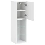 With its trendy yet practical design, this TV cabinet with LED lights will be a real eye-catcher in your room. It allows you to maximize your floor space and keep your room tidy. Please note: Screws and wall plugs for mounting inside the wall are not included. If you are unsure, consult a professional. Do not use the product if any parts are damaged, cracked, or missing. It requires a DC 5V power supply, but a suitable certified 5V USB power adapter is not included. Mounting hardware must be purchased separately. Engineered wood construction: The unit is made from strong and durable engineered wood. It is also stain-resistant, making it easy to clean and keeping it looking fresh over time. Each cube can hold everything from media players to decorative items, allowing for easy, organized storage. The hinged doors provide easy access to your stored items while maintaining the cabinet’s stylish appearance. Space-saving wall mounting feature: As a wall-mounted unit, this cabinet is an ingenious choice for smaller living rooms or to save valuable floor space.