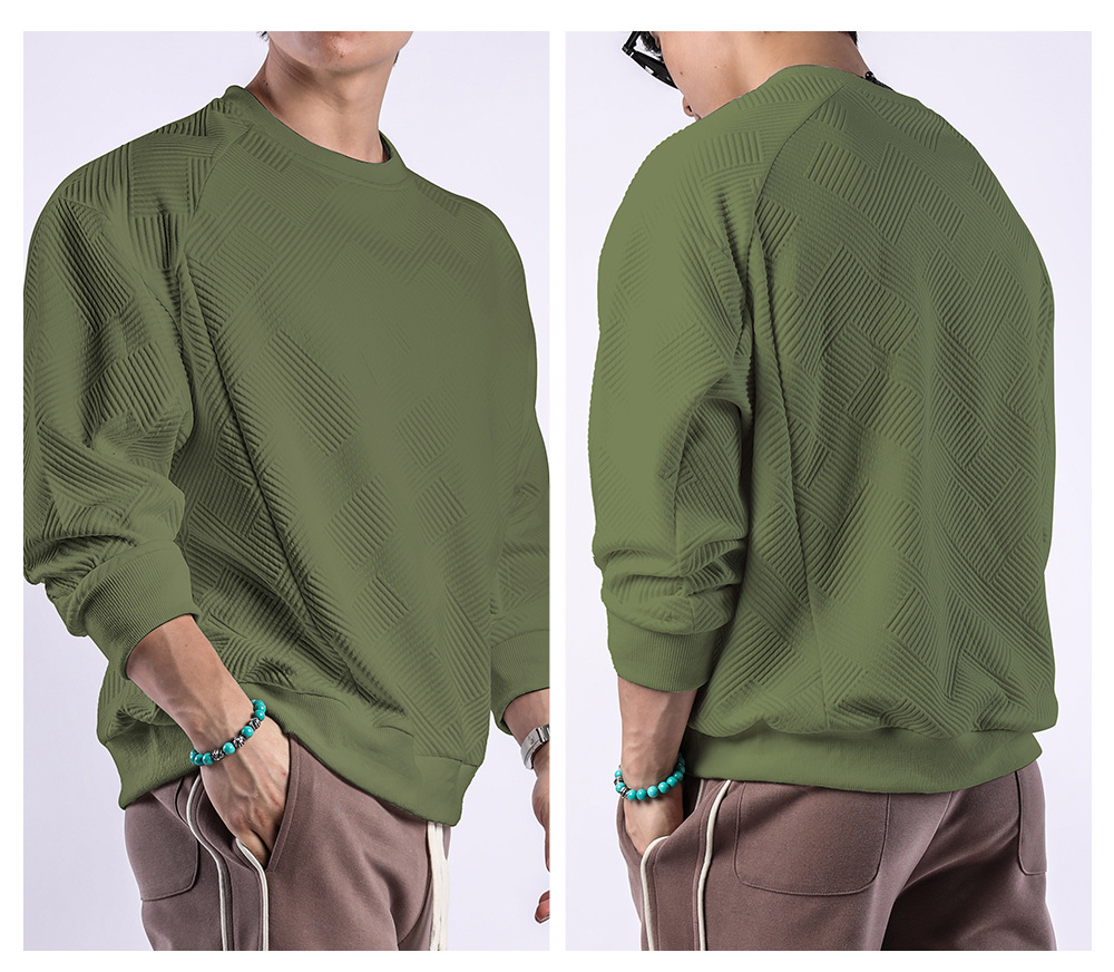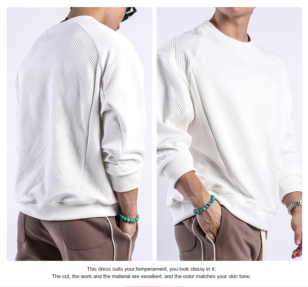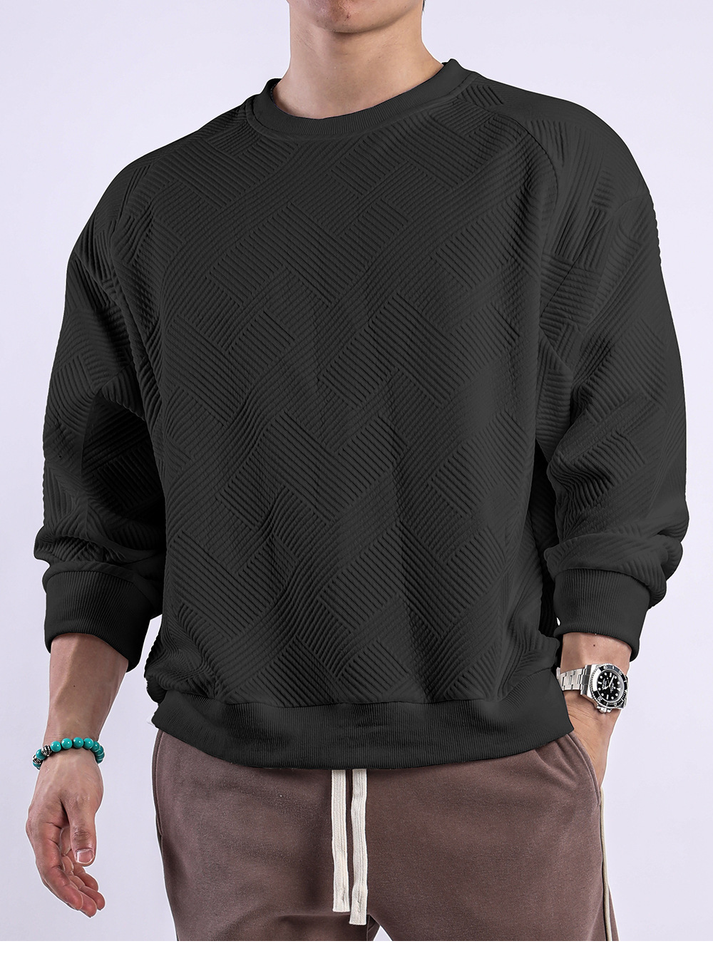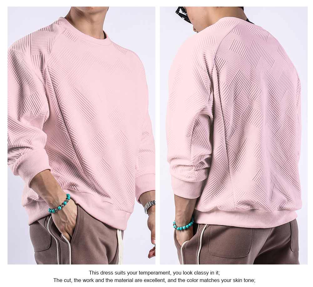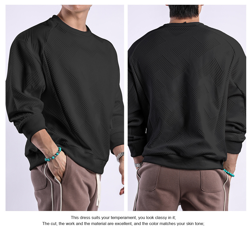 Stylish men’s twill jacquard long-sleeve sweater with round neck, ideal for spring and autumn seasons. Comfortable and versatile design.