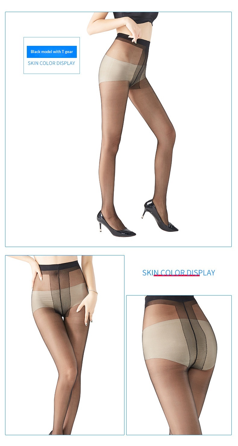 Experience comfort and elegance with ultra-thin silk pantyhose featuring a gusset for enhanced butt-lifting effect and smooth fit.