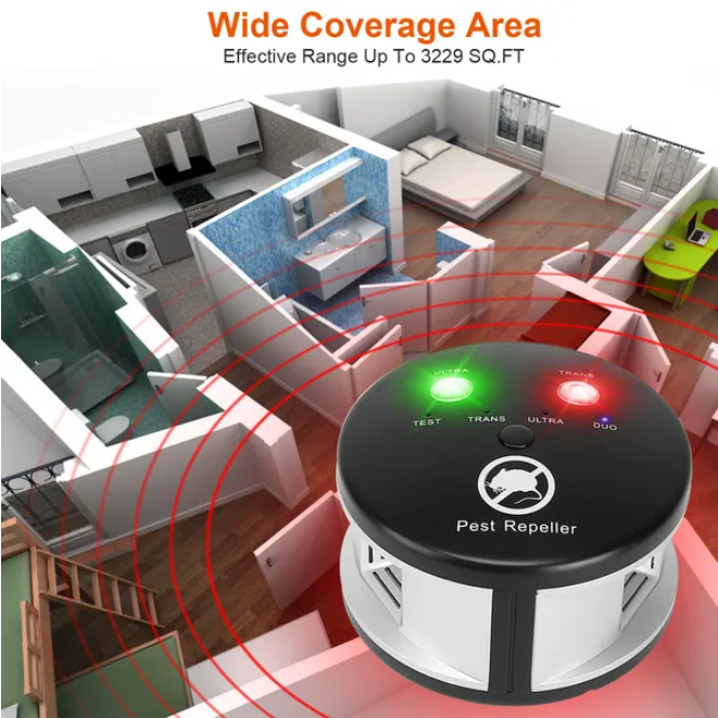 Reliable ultrasonic rodent repellent designed to deter mice and rats without chemicals or traps.