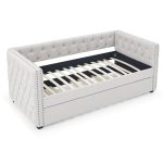 Be the first to review “Upholstered Tufted Daybed With Trundle, Button & Copper Nail, Square Arms” Cancel reply