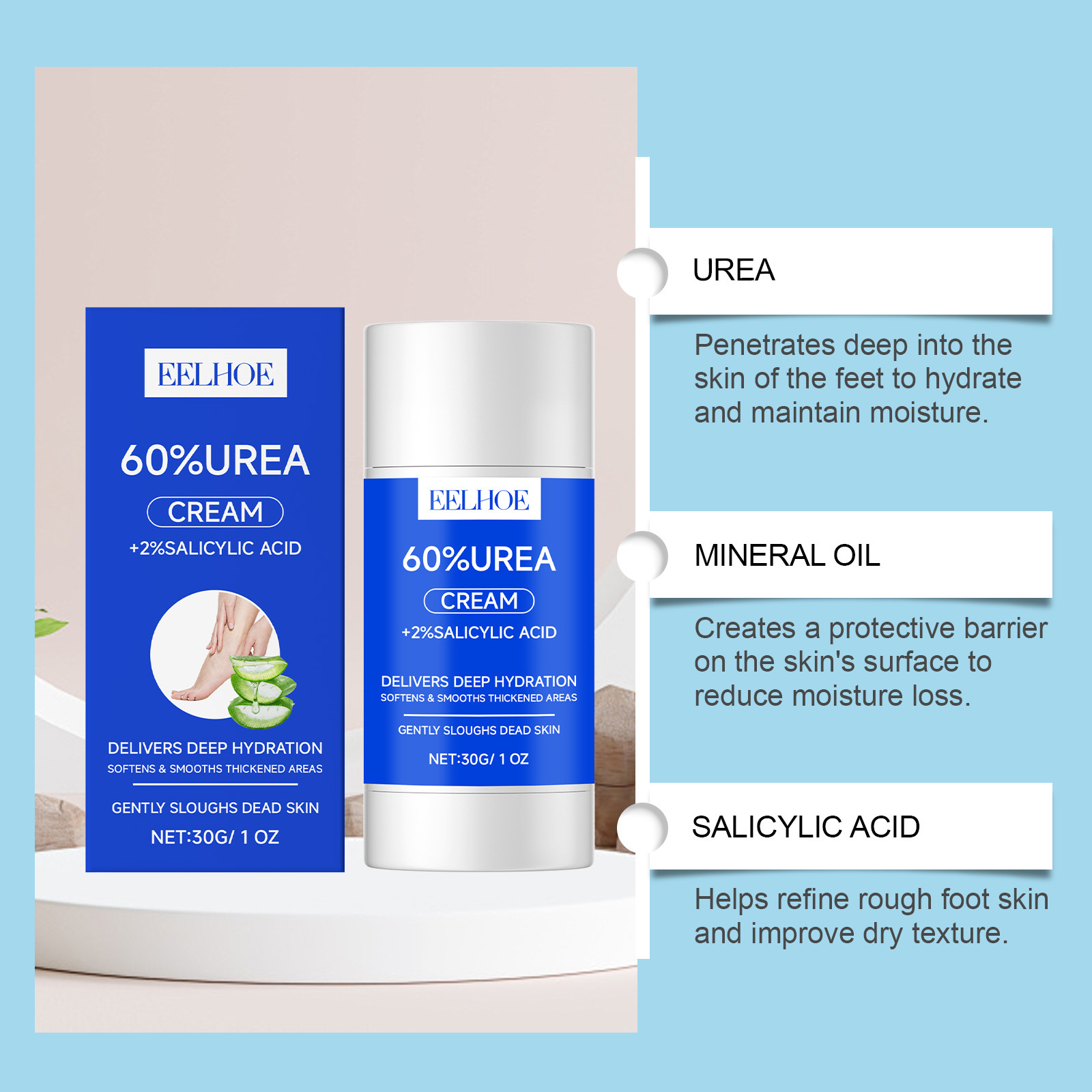 Effective urea-based foot care stick designed to deeply hydrate and soften rough, dry skin for healthier feet.