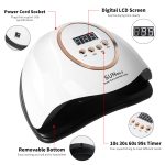 This UV LED Nail Lamp is designed for professional gel polish curing, equipped with 45 high-intensity beads for even light distribution. It features four adjustable timer settings, allowing customized drying times to accommodate various nail types and polish thicknesses. The lamp includes an automatic sensor that activates the device when hands are placed inside, enhancing convenience and energy efficiency. An integrated LCD display accurately shows the remaining curing time, ensuring precise control during use. Compact and lightweight, this nail dryer is suitable for both salon and home environments, providing reliable performance and fast drying results.