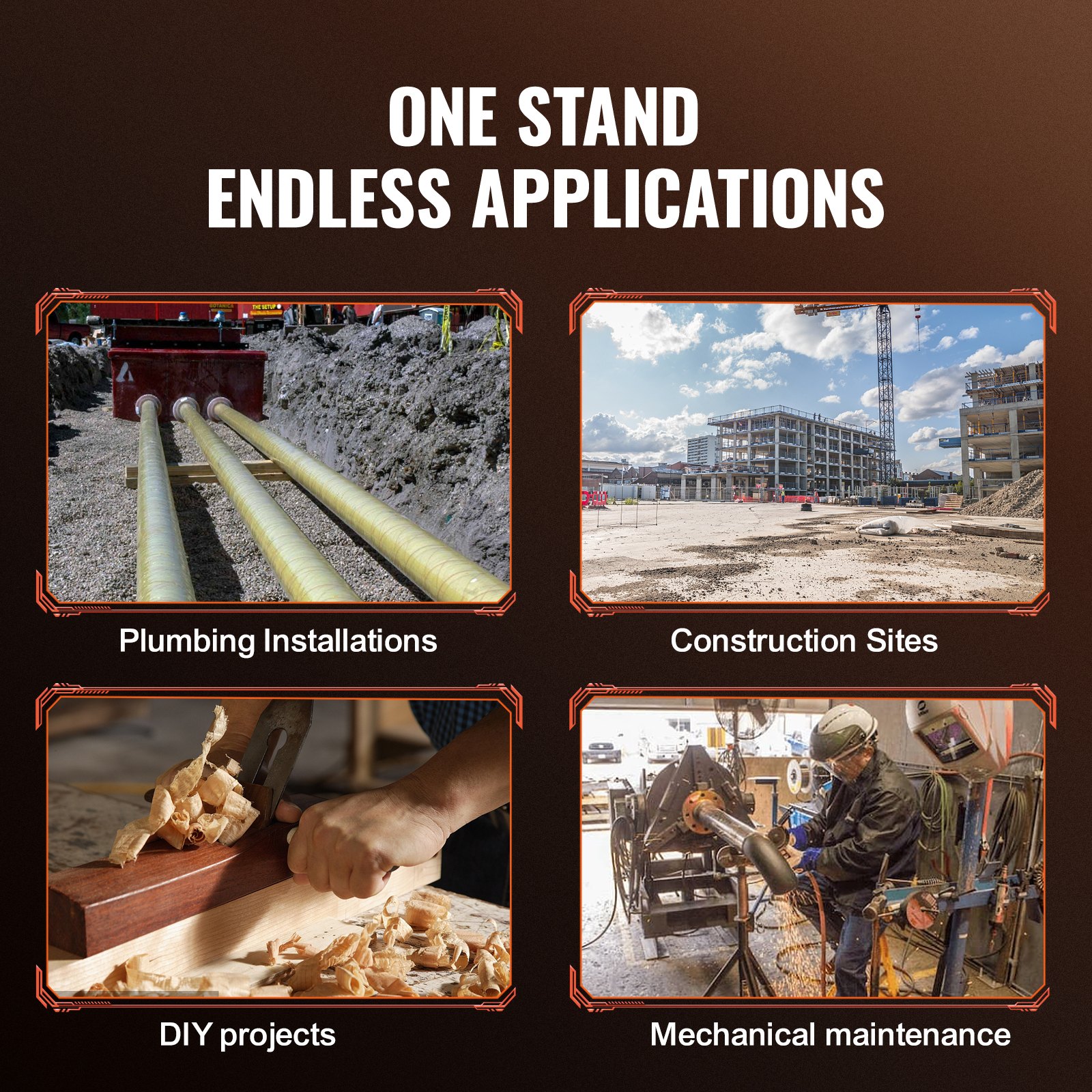 This adjustable V head pipe stand offers a sturdy support solution for pipes and trailers with a load capacity of up to 2500 lbs. Designed to accommodate heights from 71.1 cm to 132.1 cm, it features a foldable, portable construction for easy transport and storage. The high-grade steel build ensures durability and stability, while the V-shaped head securely holds pipes during maintenance or transport. Ideal for industrial and mechanical applications, this pipe jack stand combines versatility with robust performance, providing reliable support in various work settings.
